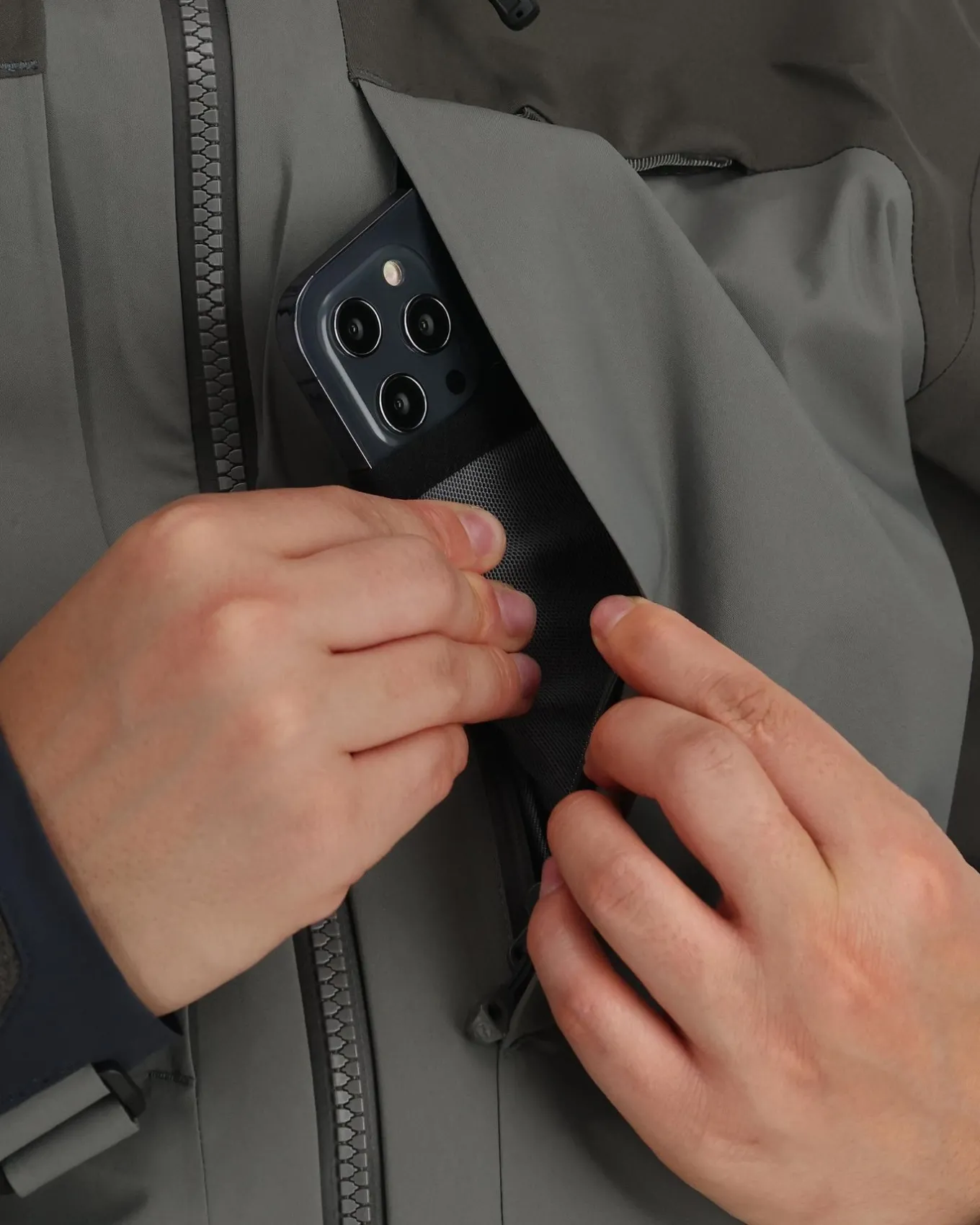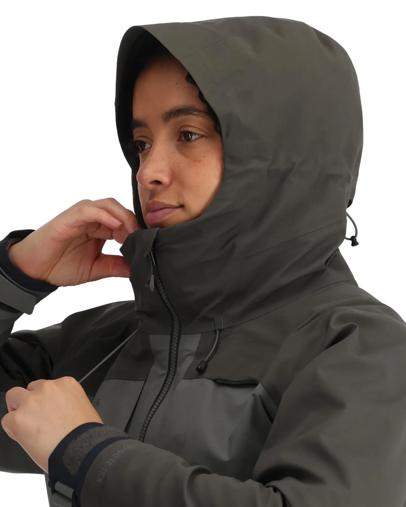 • Dual zippered handwarmer pockets are set high on the body to prevent water from entering during deep wading situations with pass-through zippers to access waders or bibs underneath