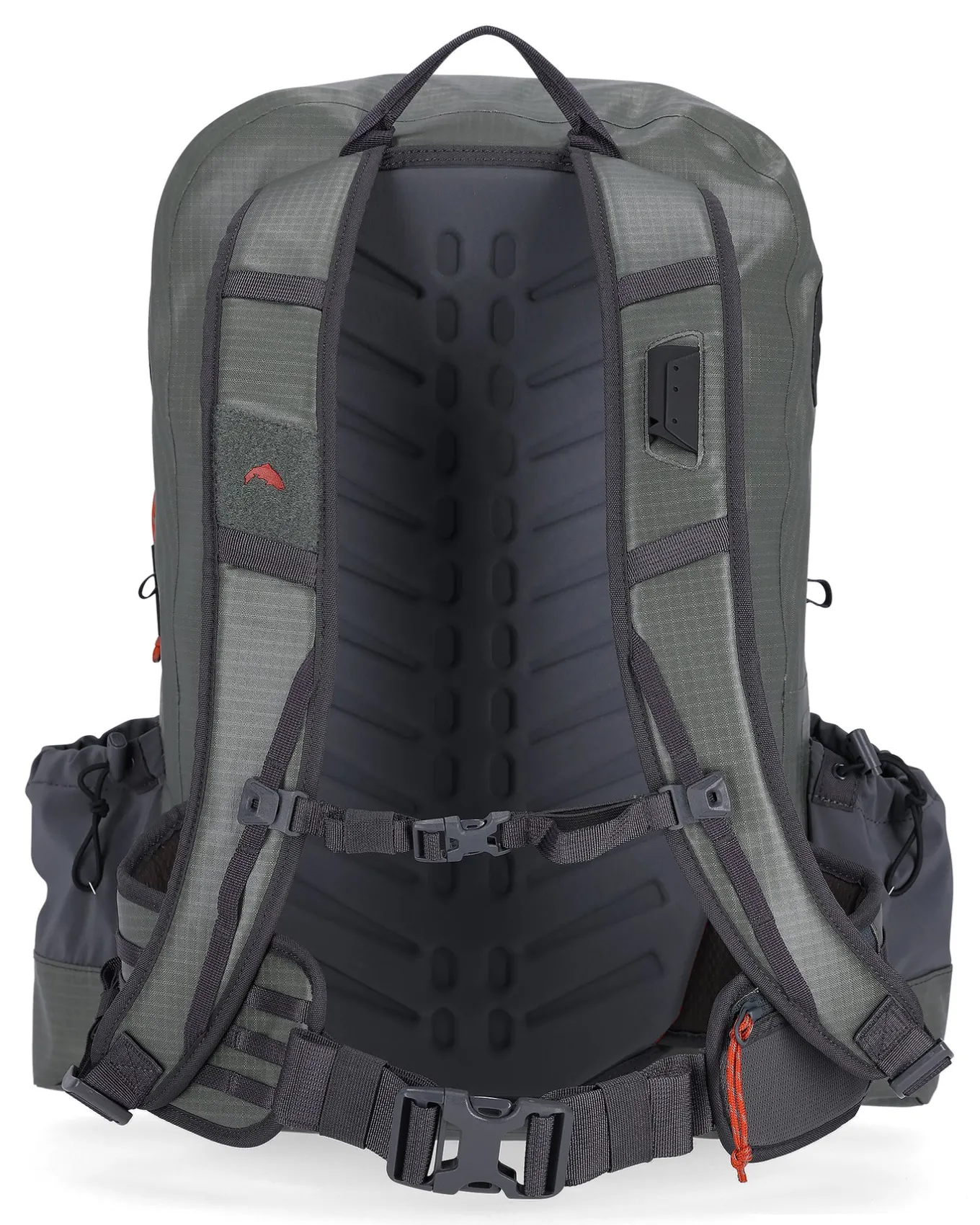 - Compression molded hydraphobic back panel and breathable padded shoulder straps with tool attachment port.