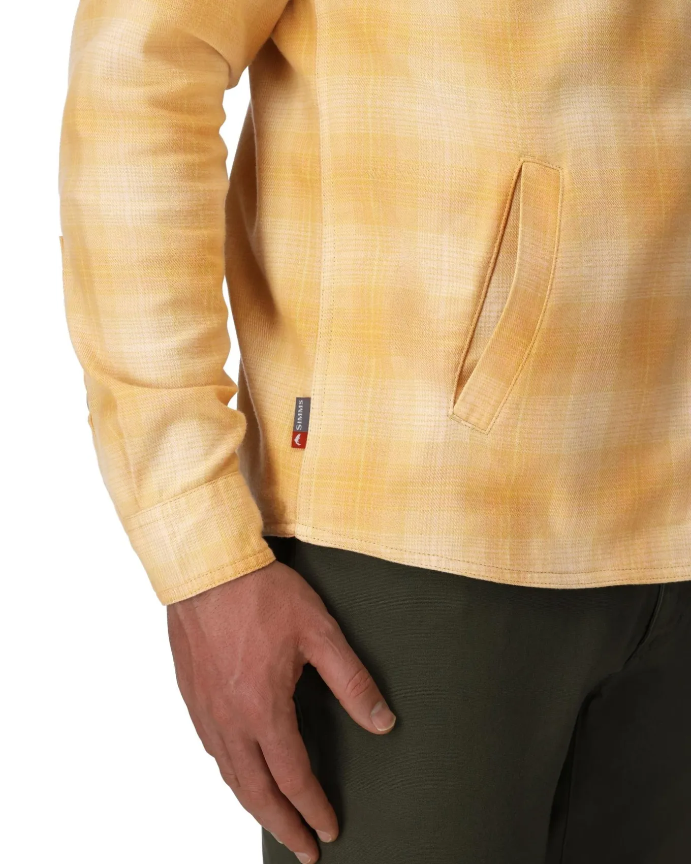 • Double layered yoke extends over the shoulders for comfort and durability when wearing with bibs or waders. Bias cut allows the fabric to naturally stretch and box pleat provides mobility.