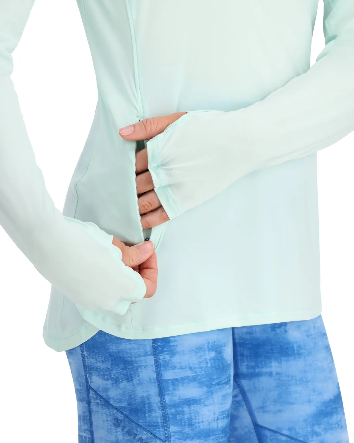 - Extended sleeve length with envelope thumbholes and a center finger loop for back-of-hand sun protection