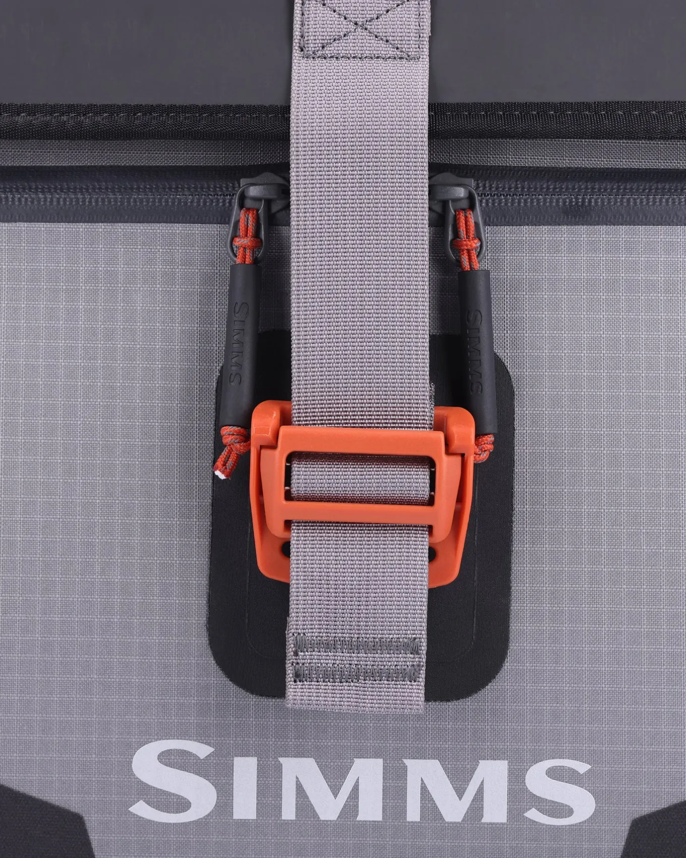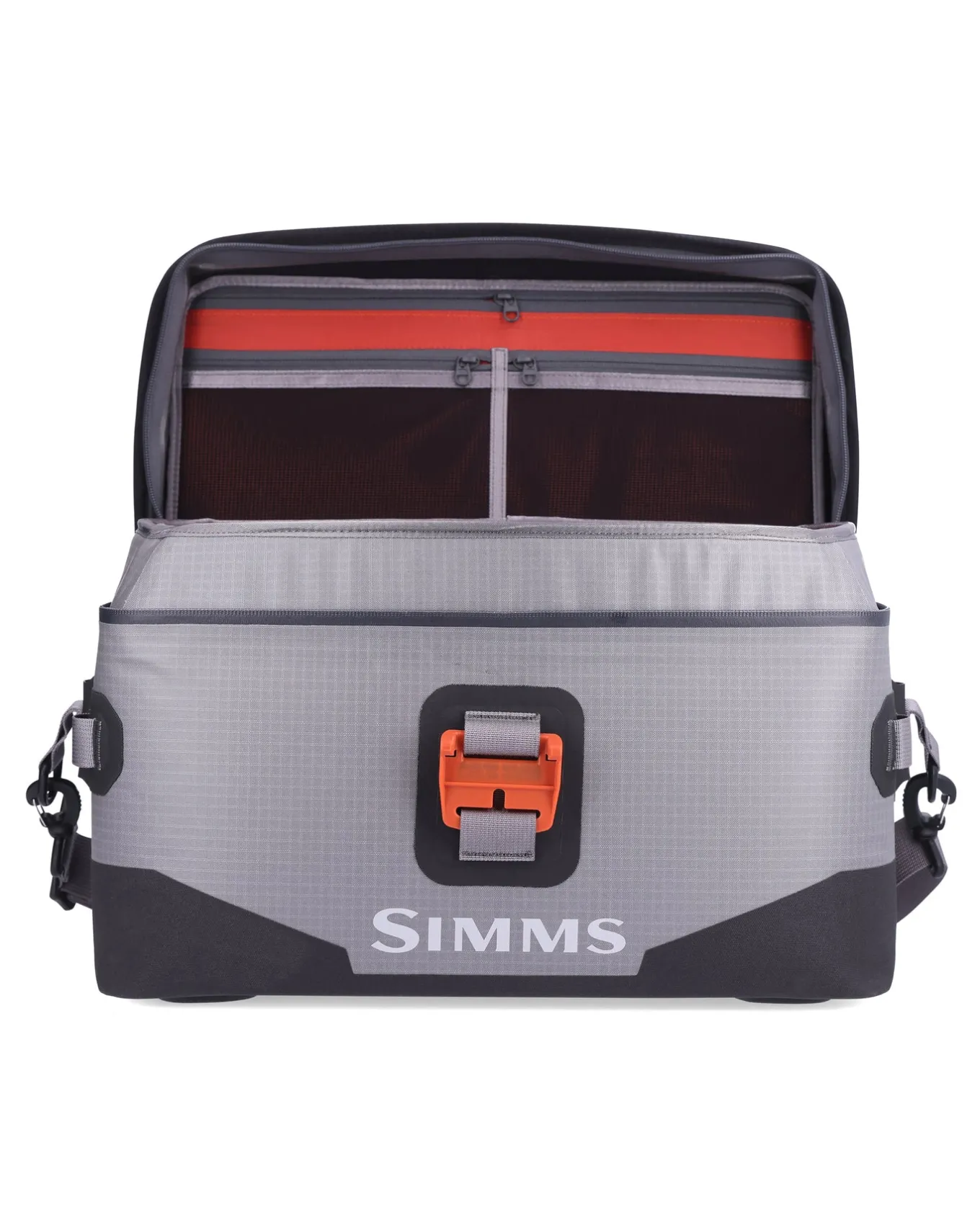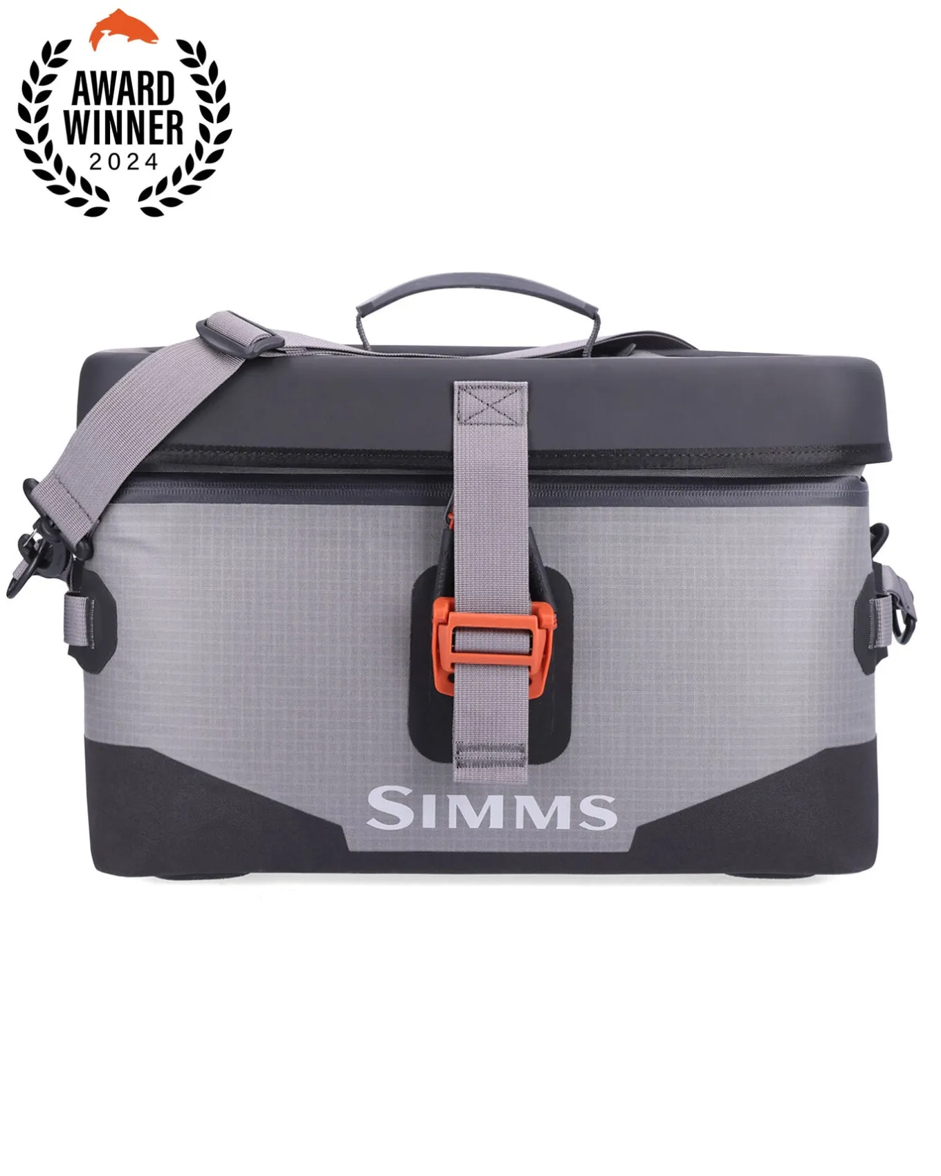 - Simms custom molded grab handle and removable/adjustable shoulder strap are included