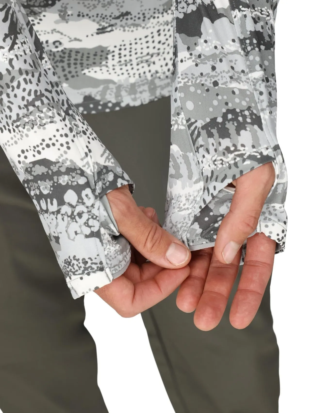 - Extended sleeve length with envelope thumbholes and a center finger loop for back-of-hand sun protection