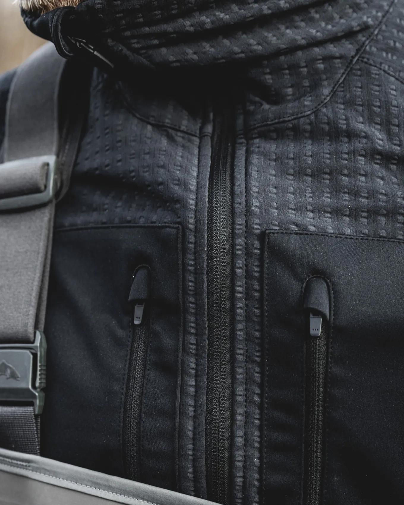 • Bonded, water-resistant chest pockets with vertical semi-auto lock zippers for low-profile storage when worn with waders or bibs