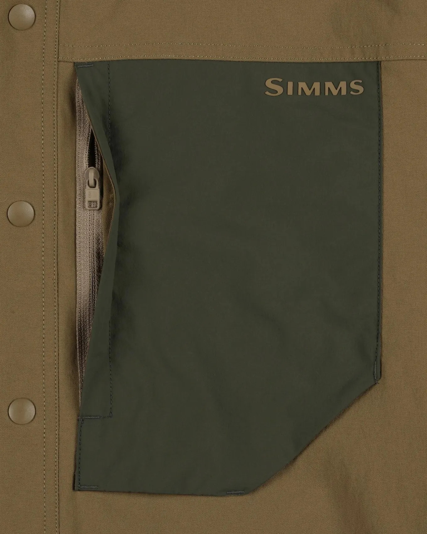 • Vertical zippered gusseted chest pockets constructed with water-resistant fabric