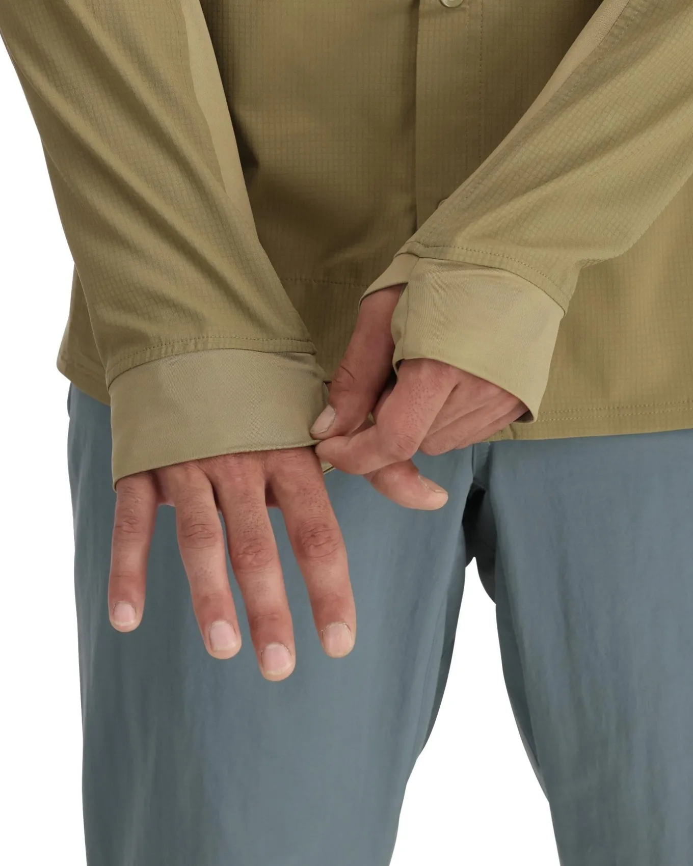 • Cuffs constructed with SolarFlex® knit fabric, with extended length and envelope thumbholes for back-of-hand sun protection.