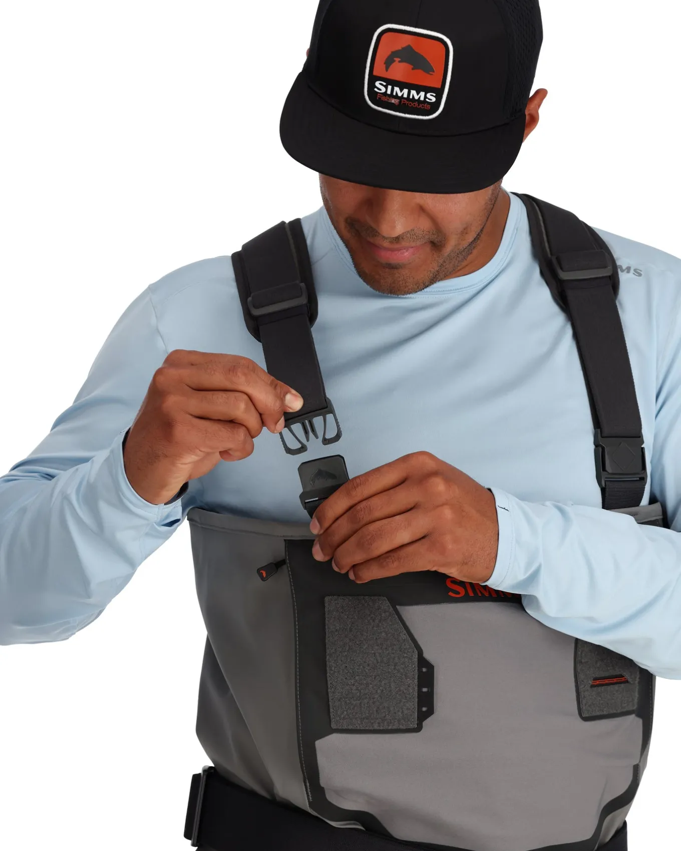 • Tool docking stations built into integrated loop patches on wader front chest pocket