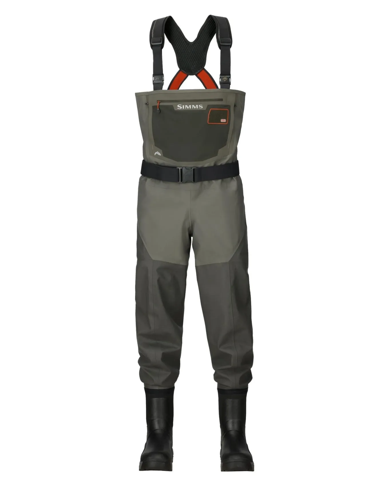 - Front and back leg seams distinctive to Simms waders
