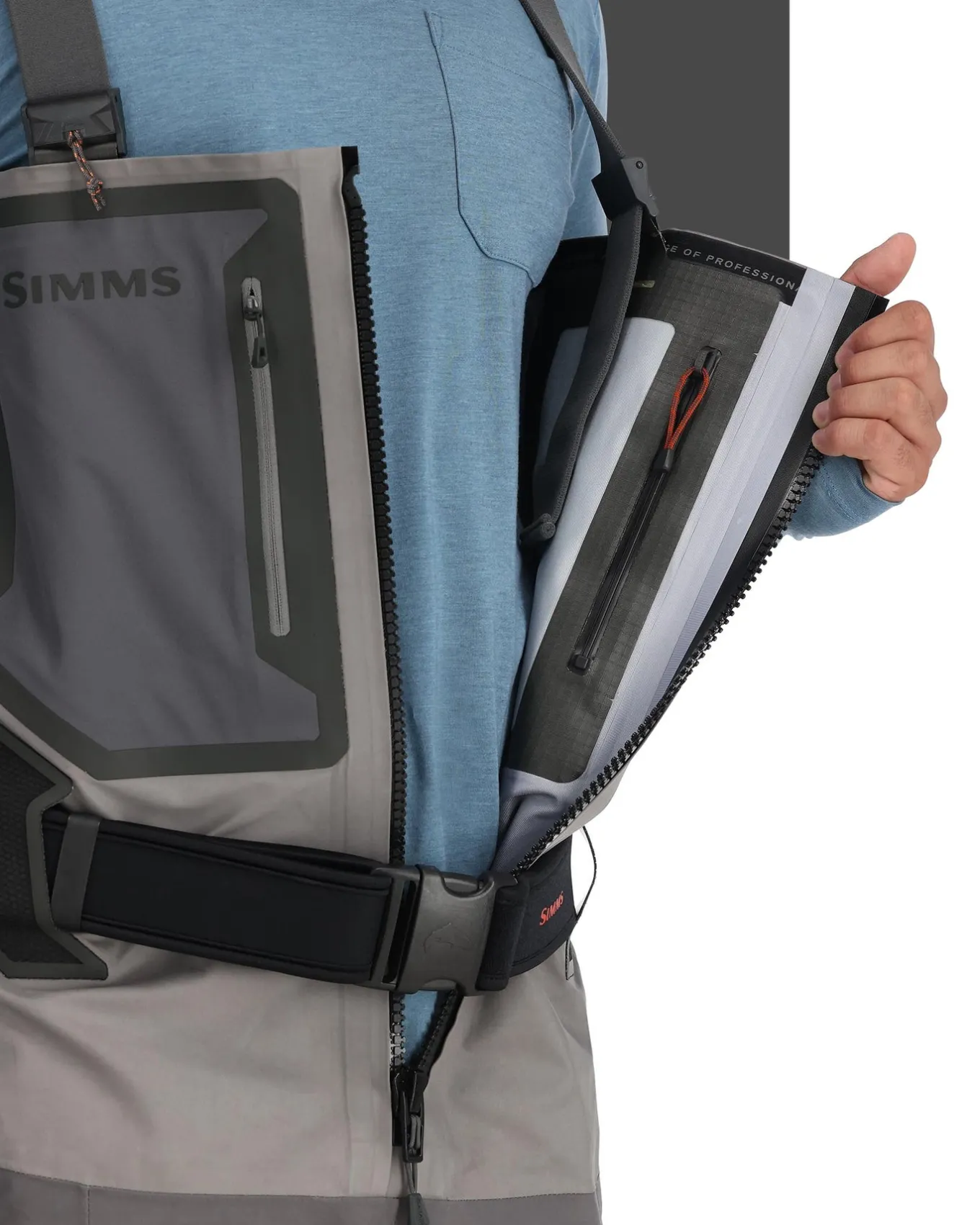 - Simms’ most durable GORE-TEX® fabric package; 4-layer GORE-TEX® Pro lower and 3-layer GORE-TEX® PRO upper