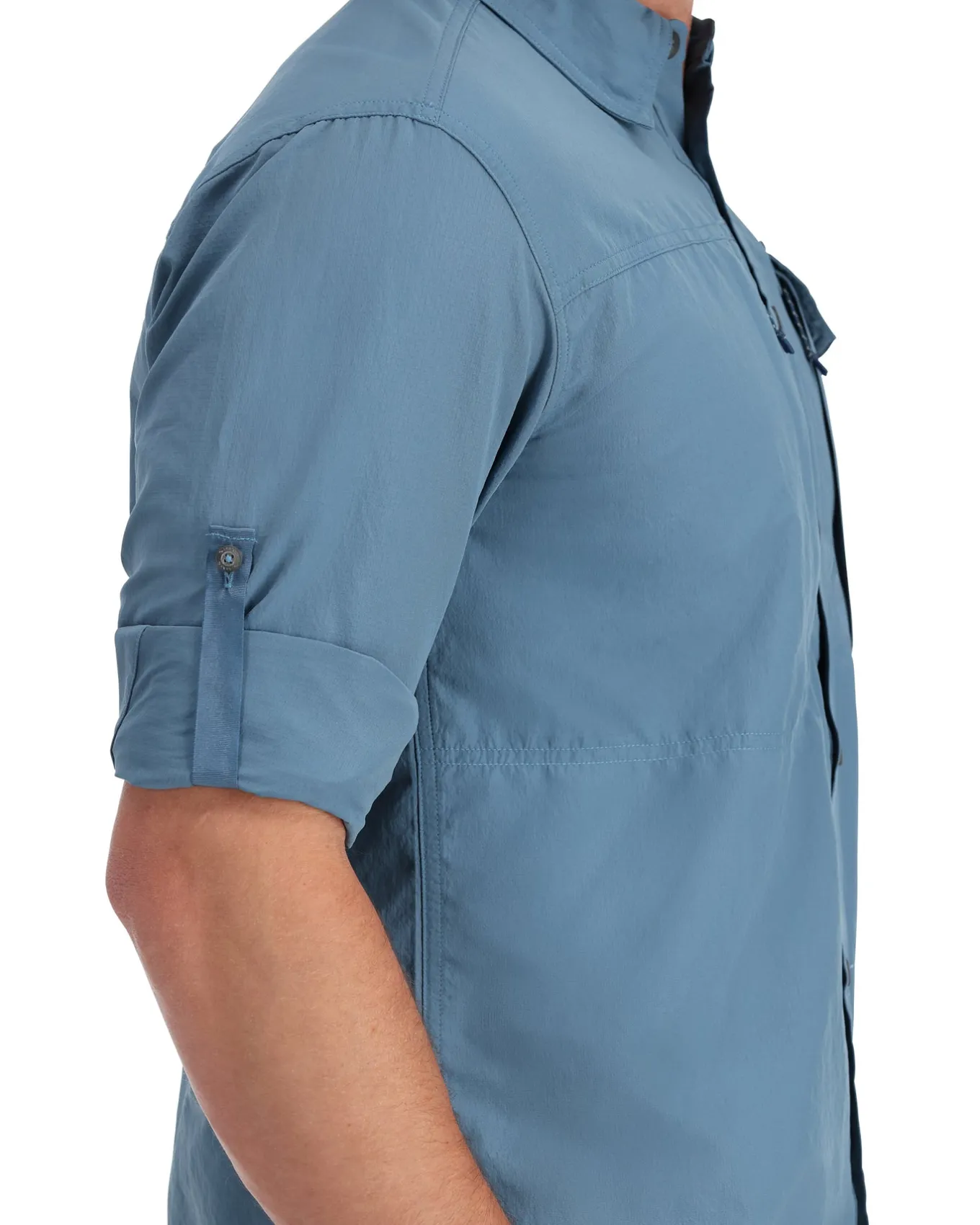- Adjustable, roll-up set-in sleeves secure with button closures. Cuffs designed for back-of-hand sun protection.