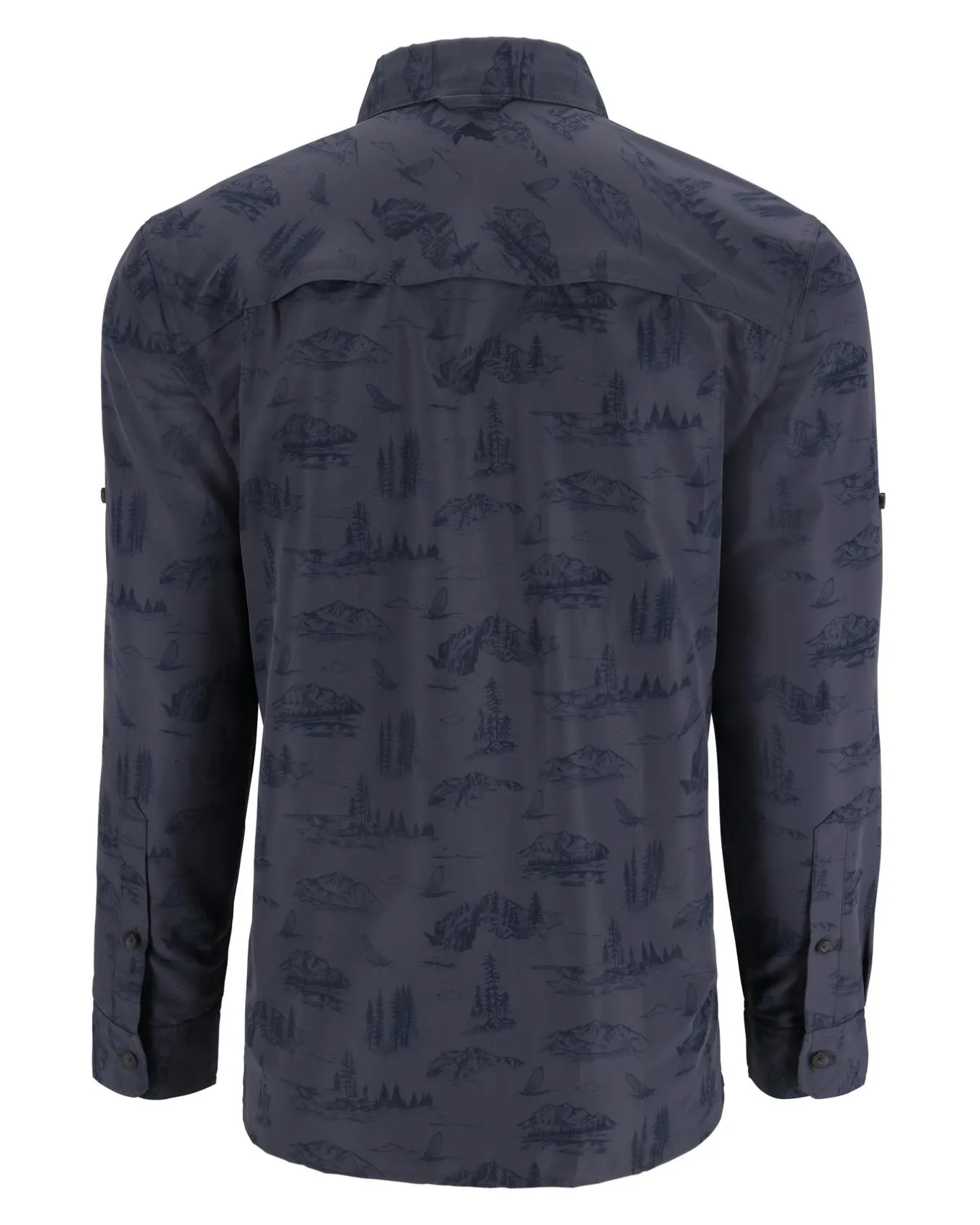 • Classic point collar for a crisp look and casual feel, center back locker loop and button-front closure. Finished with shirttail hem, self-fabric side seam gusset and convenient sunglasses chamois