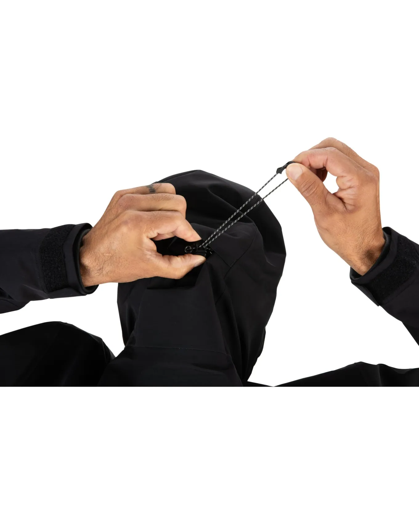 • Single point adjustable storm hood with high collar and bonded brim to shed rain