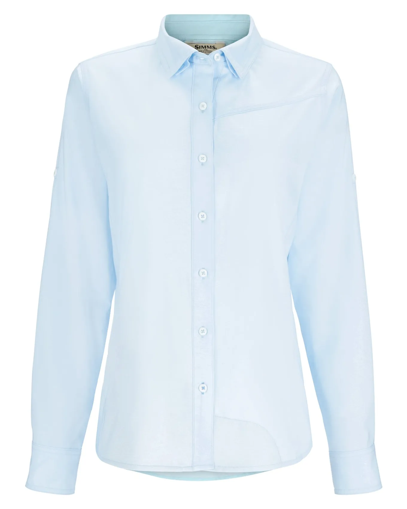 - Classic point collar and button-front closure for a crisp look. Finished with shirttail hem, self-fabric side seam gusset and a convenient sunglasses chamois