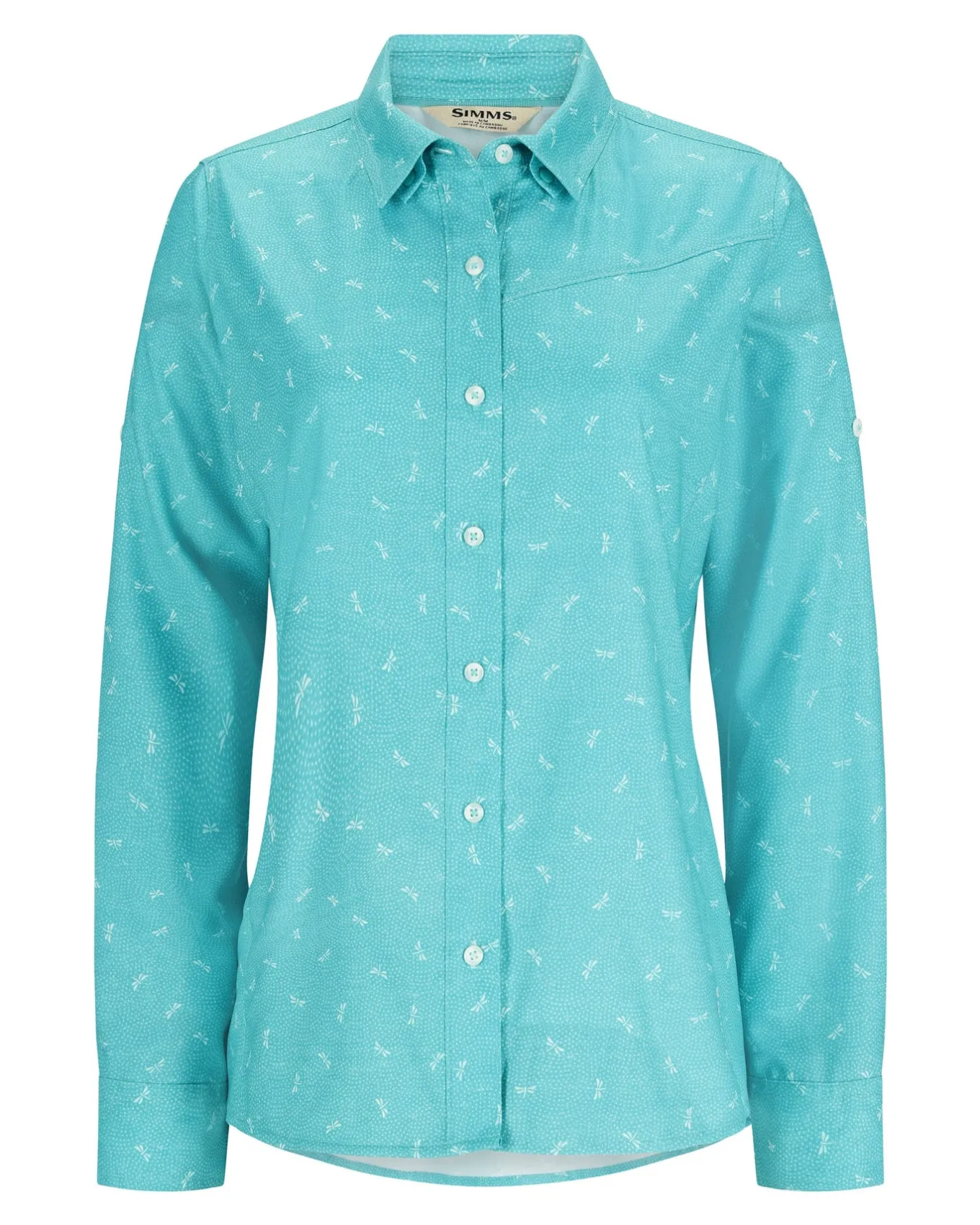 • Classic point collar and button-front closure for a crisp look. Finished with shirttail hem, self-fabric side seam gusset and a convenient sunglasses chamois